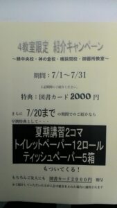 個別指導のキューブ緑中央校の小林です。 ただいまお得な紹介キャンペーン中です。 ぜひお気軽にお問い合せください! ==================== 夏期講習