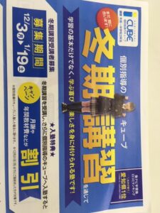 こんにちは! 日進市 個別指導 個別指導のキューブ日進校 塾長の村井です! 12月3日より、冬期講習が始まります。 受験生は、入試に向けての総復習を。 それ以外の学年の児童生徒は
