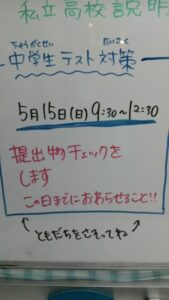 名古屋市中川区の個別指導塾「個別指導のキューブ」高畑校塾長の小山です。 明日はとっても大切なイベントがあります! 「私立高校説明会」が開かれます。 どんなイベントかというと沢山の私立高校の先生方に集まって頂き、直接お話を