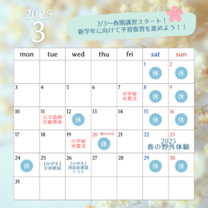 こんにちは!個別指導のキューブ守山志段味の城田です。 私立推薦入試、公立推薦入試、特色選抜入試が終わり、進路が決まった生徒も増えてきました。まずは、本当におめでとうございます。 大きな目標を一つ乗り越え、「少しゆっくりし