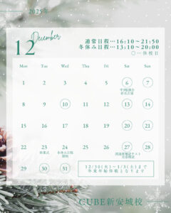 名古屋市中川区の個別指導塾「個別指導のキューブ」高畑校の塾長の小山です。 12月1日(木)から冬期講習が始まります。 今学期のテストで頑張った子ももっと勉強しておけば良かったと後悔した子も復習をする大事な期間になります。