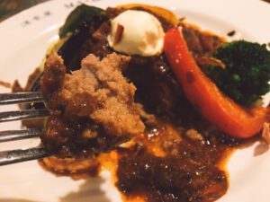 おいしいハンバーグを食べてきました。 はい、見たらわかる、美味しいやつ。 ナスやズッキーニなど夏野菜の王道という王道を 軽く火を通すというシェフのひと手間がくわえられ惜しみなくト