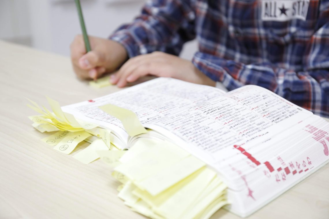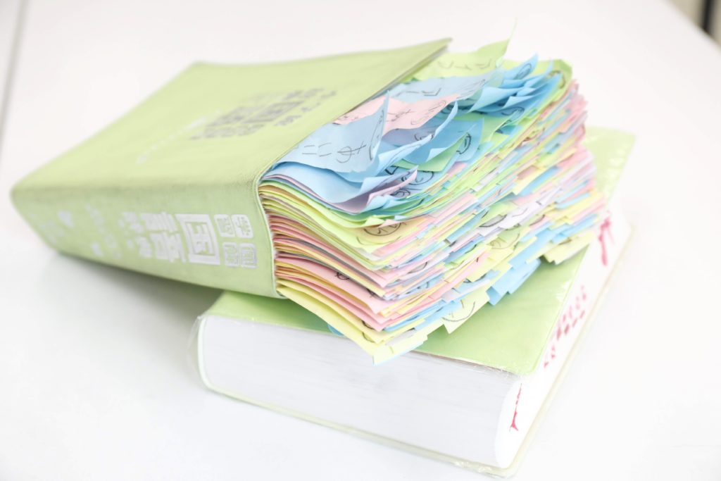 知っている言葉がどういった意味として書かれているかを調べ、付せんを貼ることで、楽しみながら言葉を覚えていくことができます。