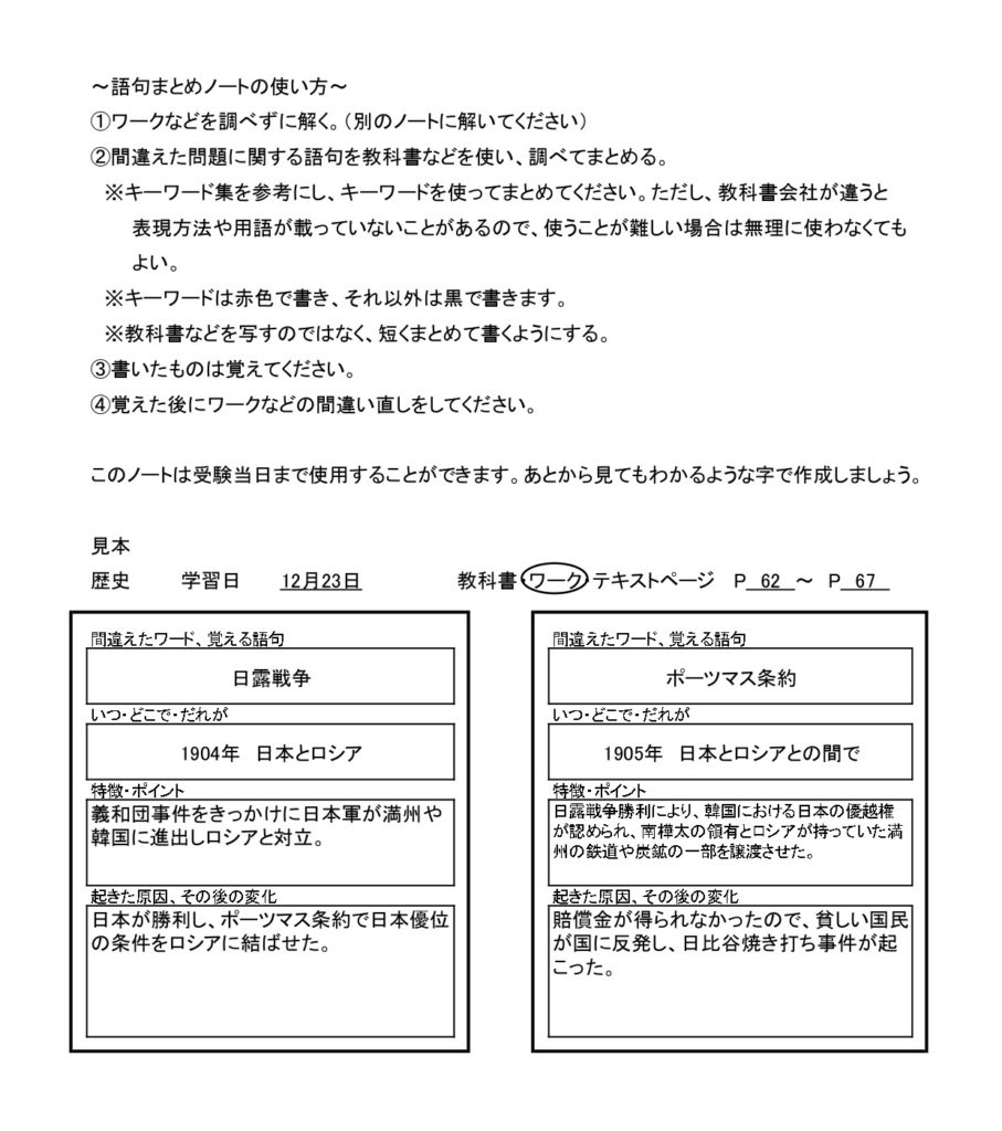 出来事やものの名前だけ覚える暗記学習ではなく、流れや仕組みなどが説明できるようにしていきます。