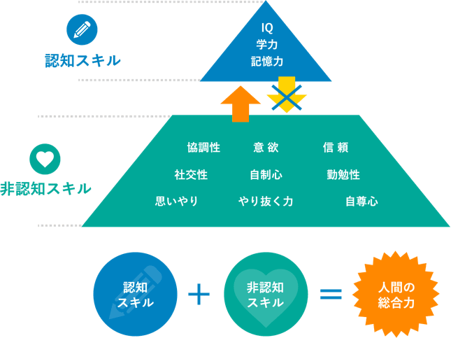 非認知スキルとは、IQや偏差値など数値化することのできる知性とは違い、人間性に紐づいた