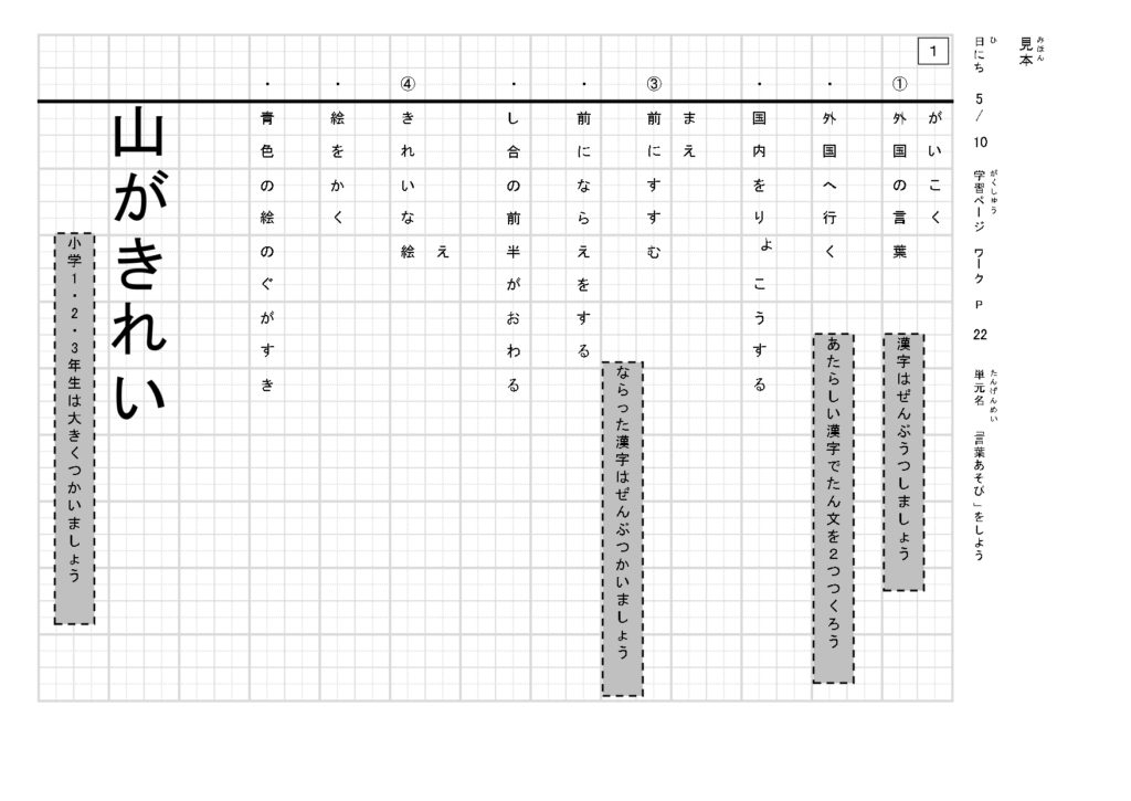 漢字を暗記で覚えさせるのではなく、意味と使い方を一緒に覚えていくため、新出漢字を使った短文を作成します。